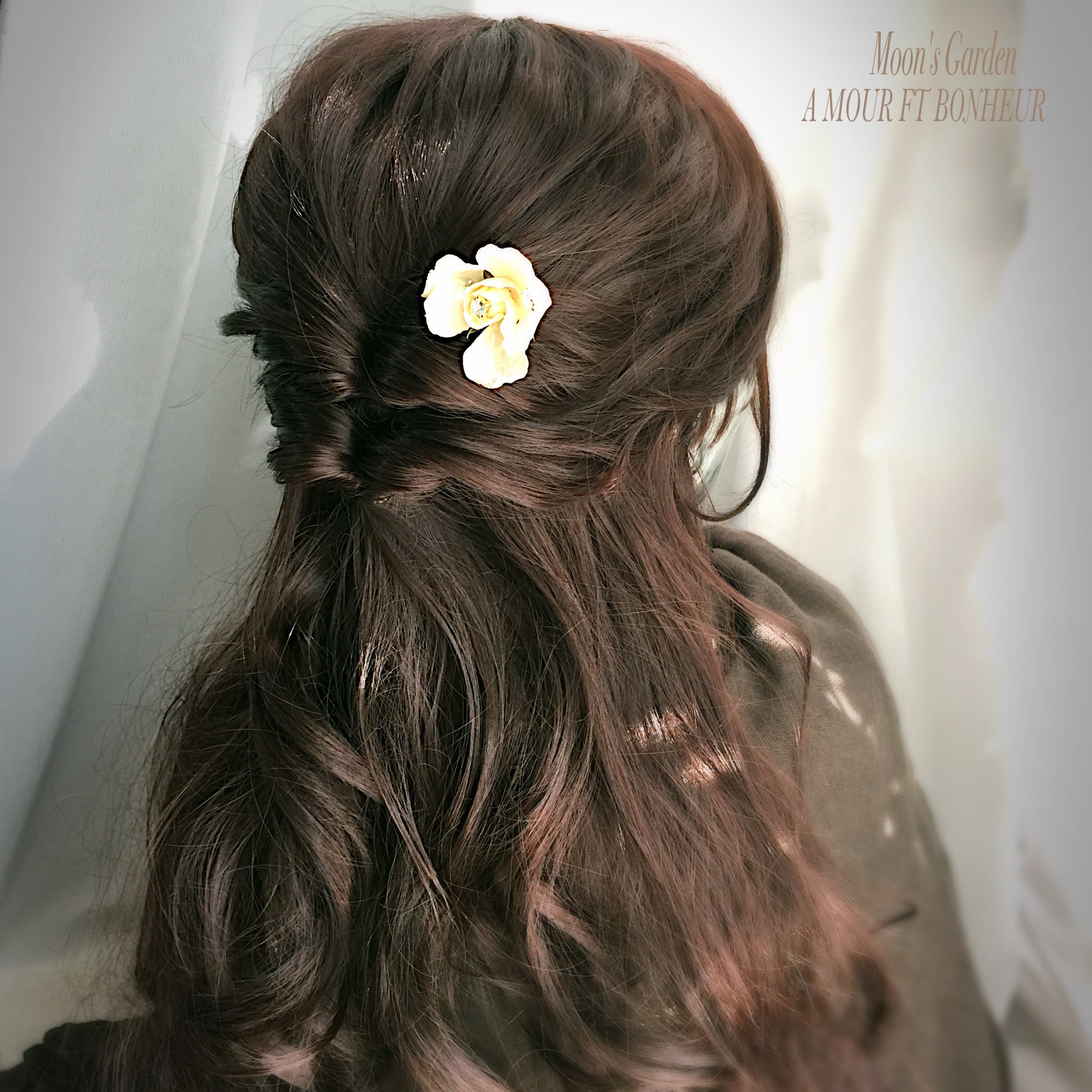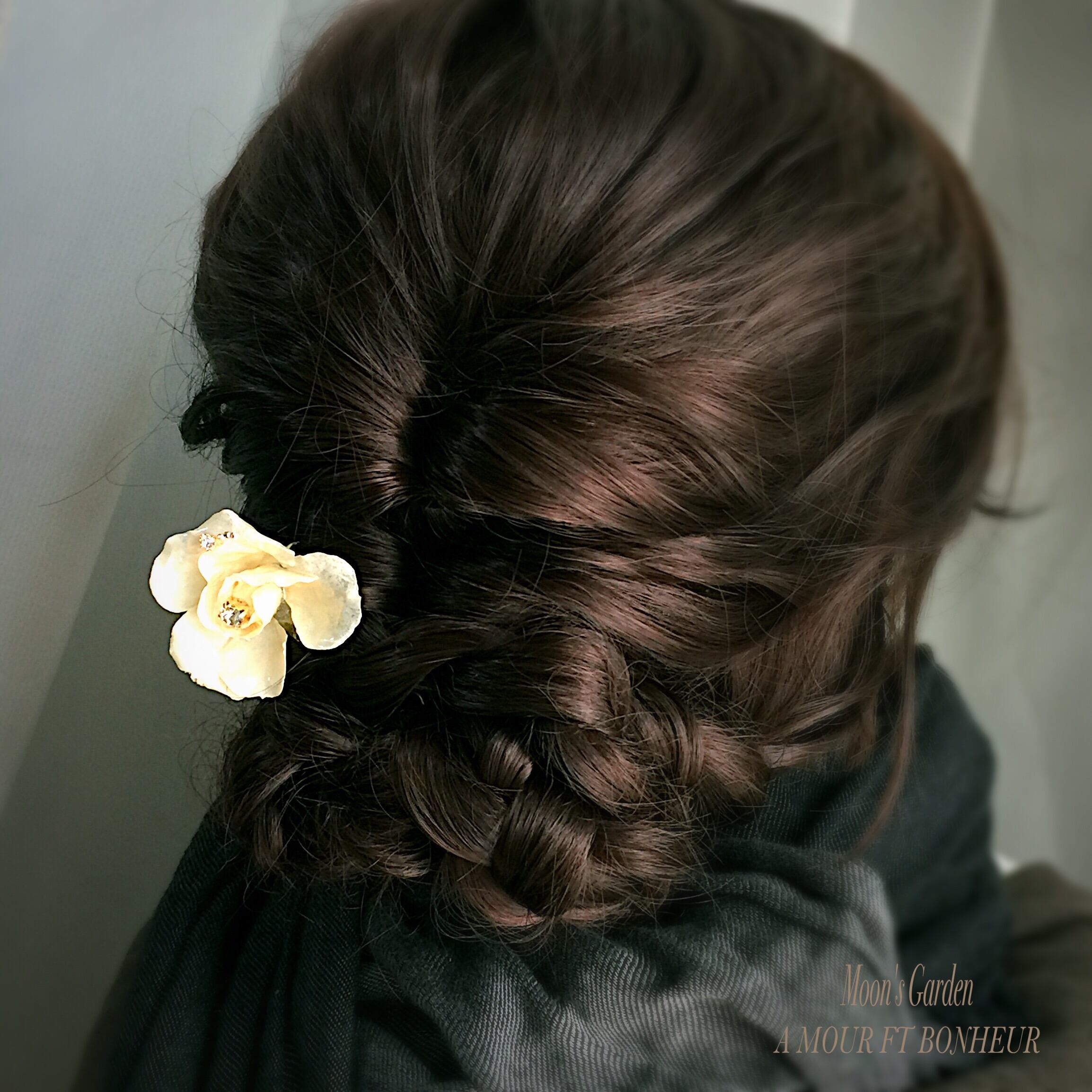 かんざし 薔薇『ホワイト・メイディランド』清楚な煌めきのかんざし【serial number0125】