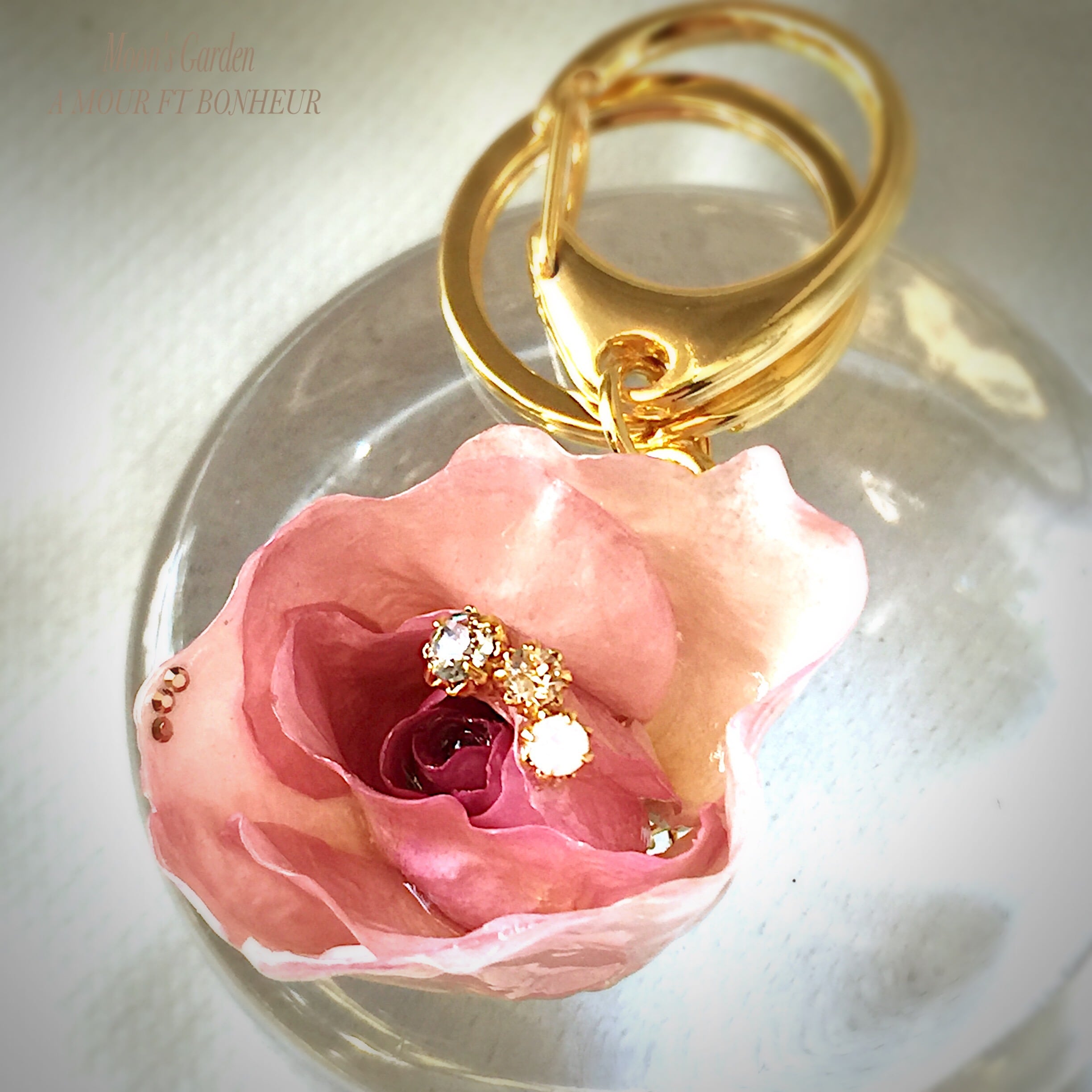 キーホルダー 薔薇『スヴニール・ドゥ・ルイ・アマード』煌めくエレガントなキーホルダー【serial number0134】
