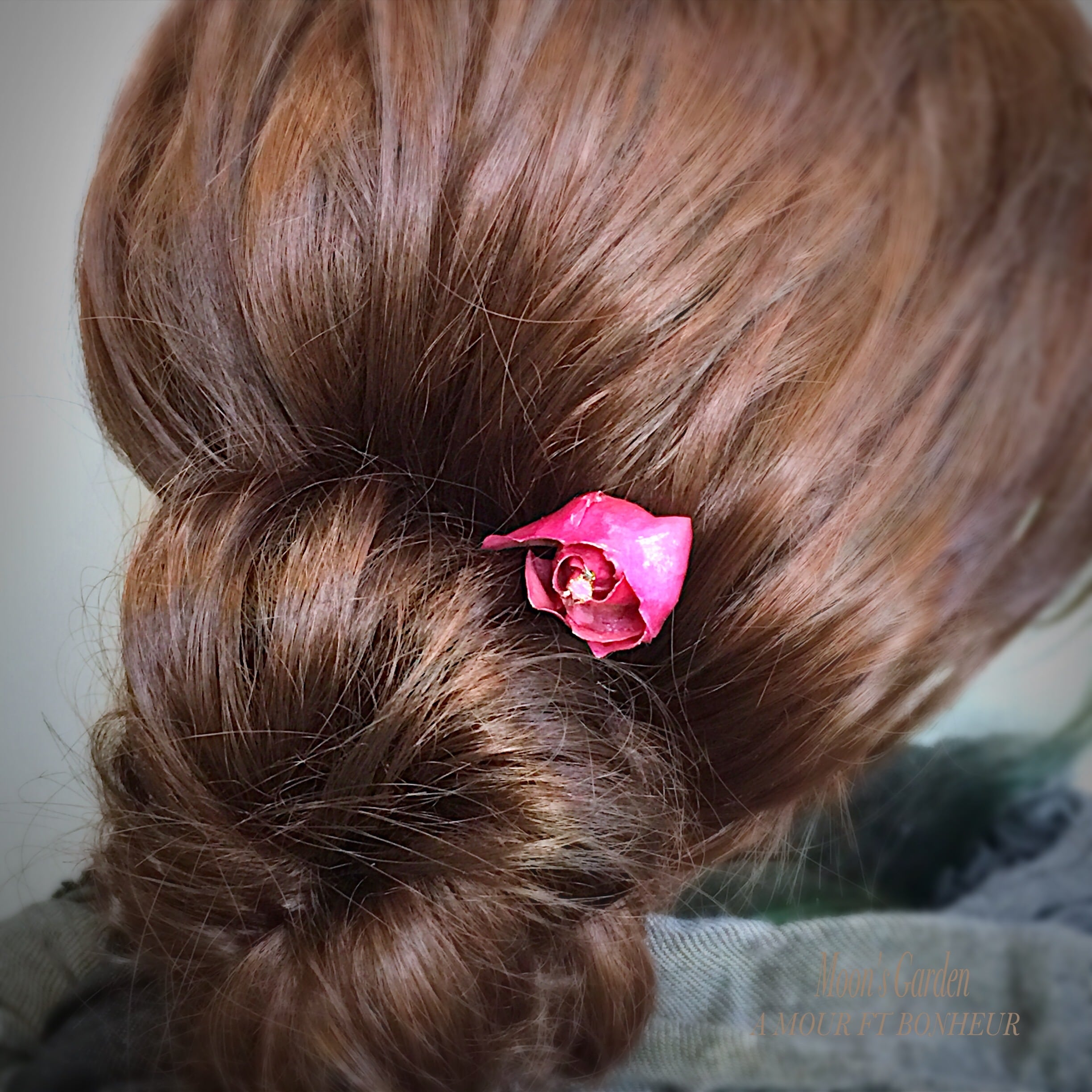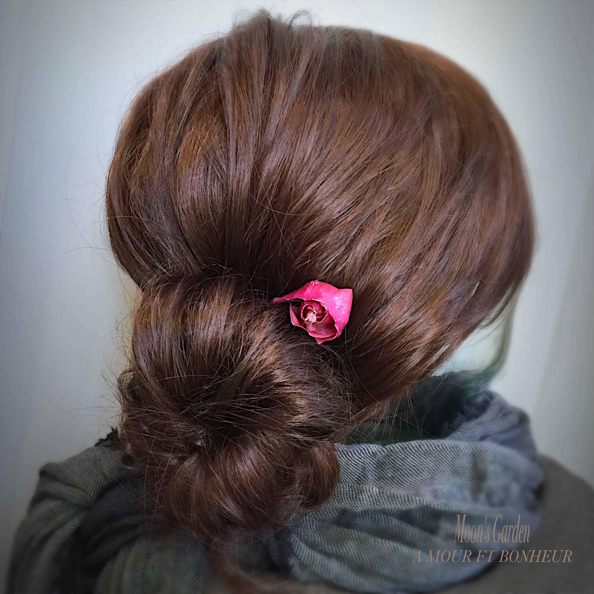 ルーズなシニヨンヘアーなど髪のワンポイントにこの薔薇の深い色合いが、凄く素敵でお洒落です。