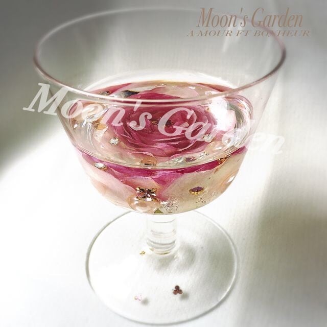 グラスフラワー 薔薇『スヴニール・ドゥ・ルイ・アマード』キラキラ輝くオシャレなグラスフラワーキャンドル【serial number 0154】